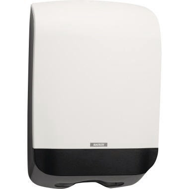 Für ein einfaches Nachfüllen lässt sich der Falthandtuchspender M nach oben hin öffnen. Freie Wahl bei der Nutzung der Schließfunktion (mit oder ohne Schlüssel). Beim Falthandtuchspender M sorgen zusätzliche frontale Halterungen dafür, dass der Papierstapel beim Nachfüllen des Spenders an Ort und Stelle bleibt. Zusätzliche Stützrippen im Inneren des Spenders garantieren ebenfalls eine leichte Papierentnahme, unabhängig vom Füllstand. · Verwendung für Produkt: Falthandtücher · Werkstoff: Kunststoff · Farbe: weiß · abschließbar möglich: Ja · Maße: 30,1 x 45 x 14,6 cm (B x H x T)