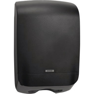 Für ein einfaches Nachfüllen lässt sich der Falthandtuchspender M nach oben hin öffnen. Freie Wahl bei der Nutzung der Schließfunktion (mit oder ohne Schlüssel). Beim Falthandtuchspender M sorgen zusätzliche frontale Halterungen dafür, dass der Papierstapel beim Nachfüllen des Spenders an Ort und Stelle bleibt. Zusätzliche Stützrippen im Inneren des Spenders garantieren ebenfalls eine leichte Papierentnahme, unabhängig vom Füllstand. · abschließbar möglich: Ja · Farbe: schwarz · Maße: 30,1 x 45 x 14,6 cm (B x H x T) · Verwendung für Produkt: Falthandtücher · Werkstoff: Kunststoff