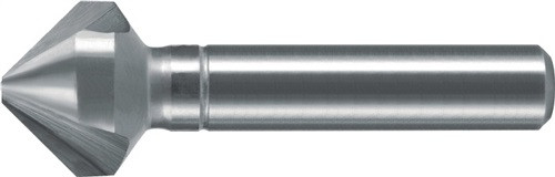 Pulverstahl · ASP · DIN 335 C · 3 Schneiden · 90 ° Senkwinkel · Zylinderschaft · rechtsschneidend · CBN tiefgeschliffene Spannuten · zum grat- und ratterfreien Ansenken, Entgraten und Versenken · beste Ergebnisse bei niedriger Schnittgeschwindigkeit · ASP Kegel- und Entgratsenker aus pulvermetallurgisch hergestelltem Schnellarbeitsstahl · metallurgisch hergestellte Stähle besitzen, im Gegensatz zu konventionellen HSS-Stählen, ein gleichbleibendes, feinkörniges Materialgefüge · dadurch verfügen diese über eine gute Warmhärte, Druckbelastbarkeit und Verschleißfestigkeit · ideal bei VA-Stählen, rost- und säurebeständigen Stählen, Titan und Titan-Legierungen ·  Weitere technische Eigenschaften Vorschub: 0,12mm/U