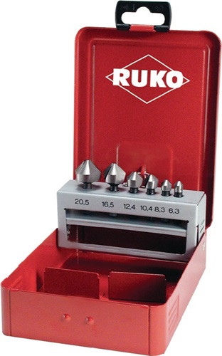 90 ° · HSS · 3 Schneiden · 6,3 mm (1/4")-Sechskantschaft · zum Entgraten, Anfasen, Senken · für Stähle und NE-Metalle Inhalt: je 1 Stück Senk-Bit 6,3 - 8,3 - 10,4 - 12,4 - 16,5 - 20,5 mm, Handgriff · Weitere technische Eigenschaften Inhalt: 7-teilig • Ausführung: kurze Ausführung