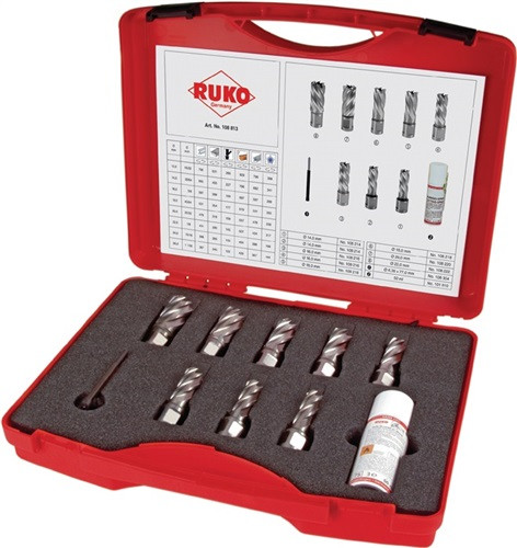 mit Weldonschaft (3/4") · CBN-geschliffen Inhalt: 8 Stck. Kernbohrer mit Weldonschaft (3/4") Ø 2x14, 2x16, 2x18, 1x20, 1x22 mm 1 Schneidspray 50 ml 1 Führungsstift Ø 6,35 x 77 mm für Schnitttiefe 30 mm im Kunststoffkoffer · Weitere technische Eigenschaften Inhalt: 10 teilig • Schaftausführung: Weldon • Schnitttiefe: 30mm
