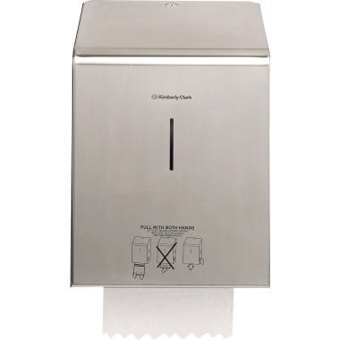 Kimberly-Clark Handtuchspender PROFESSIONAL 30,3 x 23 x 43,5 cm (B x H x T) Edelstahl silber · Farbe: silber · Werkstoff: Edelstahl · abschließbar möglich: Ja · Maße: 30,3 x 23 x 43,5 cm (B x H x T) · Verwendung für Produkt: Rollenhandtücher 6665, 6667, 6668, 6765