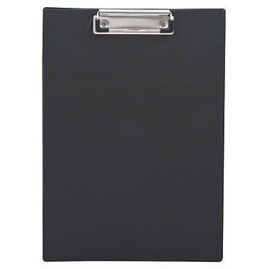 Für Blöcke und lose Blätter, bis DIN A4, Kunststoffecken an der Klemme. Anordnung der Lage der Klemme: kurze Seite. · Breite: 236 mm · Werkstoff: Polypropylen · Verwendung für Papierformat: DIN A4 · Stärke: 0,18 mm · Material der Klemme: Metall · Maße: 23,6 x 32,1 cm (B x H) · Höhe: 321 mm · Farbe der Klemme: silber · Ausführung der Lieferzusammenstellung: inkl. Aufhängeöse · Aufhängeöse vorhanden: Ja · Anordnung der Lage (Klemme): oben · abgerundete Ecken vorhanden: Nein · Farbe: schwarz