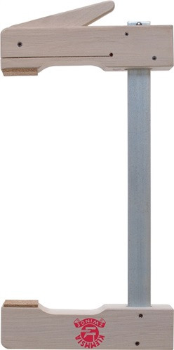 Schnellzwinge mit Exzenterhebel · Spannkörper aus Weißbuchenholz · rutschsicher durch Korkauflagen · glanzverzinkte Stahlschiene