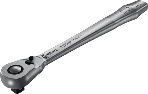 12,5 mm (1/2")-Vierkantantrieb · sehr robuste, feinverzahnte, geschmiedete Vollmetallknarre · aus Chrom-Molybdän-Stahl · Nussverriegelungsfunktion · schlanke Bauform · langer Hebel · feinverzahnt · Rückschwenkwinkel nur 5° · (optimal geeignet auch für sehr beengte Arbeitsräume) Rückschwenkwinkel 5° 72 Zähne