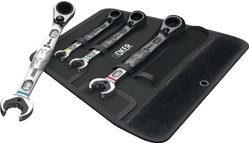 Knarrenringmaulschlüsselsatz 4 tlg. SW 10-19 Haltef. 80Z. Rings.15 Grad gekröpft