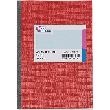 König & Ebhardt Kladde DIN A5 kariert rot 96 Bl. · Seitenzahl vorhanden: Nein · Material des Einbandes: Pappe, glanzlackiert · Beschriftungsfeld vorhanden: Ja · Oberflächenstruktur: geprägt · Paper by Nature: Nein · PEFC: Nein · Grammatur: 70 g/m² · Papierformat: DIN A6 · Blauer Engel: Nein · Ausführung des Papiertyps: holzfrei · Ausführung der Lineatur: kariert · Ausführung der Bindung: Klebebindung · Anzahl der Blätter: 96 Bl. · Farbe des Einbandes: rot · Farbe des Rückens: grau
