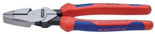 Spezial Werkzeugstahl in Sondergüte · massive Ausführung für schwerste Belastung · universell einsetzbar · ganz in Öl gehärtet und vergütet · Schneiden zusätzlich induktiv gehärtet · Schneidenhärte ca. 64 HRC, hoch übersetzt für leichtes Schneiden · 40 % Kraftersparnis gegenüber herkömmlichen Kombizangen durch optimierte Übersetzung Kopf poliert · Griffe mit ergonomischen 2-Komponenten-Hüllen