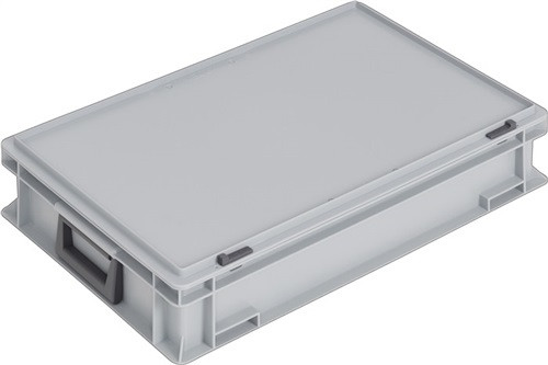 aus Polypropylen · mit 2 Griffen an den Stirnseiten · mit einrastendem Schiebeverschluss · sehr stabil · rutschsicher stapelbar · resistent gegen die meisten Säuren und Öle · temperaturbeständig von -20 °C bis +80 °C · Farbe grau · Weitere technische Eigenschaften Ausstattung: 2 Griffe • Ausführung: Schiebeverschluss • Innenhöhe: 115mm • Innenlänge: 555mm • Innenbreite: 355mm