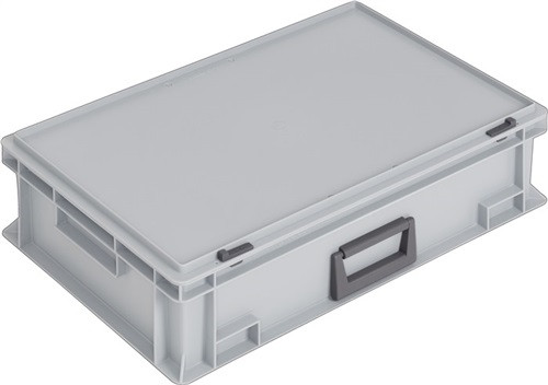 aus Polypropylen · mit 1 Griff an der Längsseite · mit einrastendem Schiebeverschluss · sehr stabil · rutschsicher stapelbar · resistent gegen die meisten Säuren und Öle · temperaturbeständig von -20 °C bis +80 °C · Farbe grau · Weitere technische Eigenschaften Ausstattung: 1 Griff • Ausführung: Schiebeverschluss • Innenhöhe: 145mm • Innenlänge: 553mm • Innenbreite: 353mm