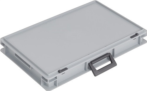 aus Polypropylen · mit 1 Griff an der Längsseite · mit einrastendem Schiebeverschluss · sehr stabil · rutschsicher stapelbar · resistent gegen die meisten Säuren und Öle · temperaturbeständig von -20 °C bis +80 °C · Farbe grau · Weitere technische Eigenschaften Ausstattung: 1 Griff • Ausführung: Schiebeverschluss • Innenhöhe: 70mm • Innenlänge: 555mm • Innenbreite: 355mm