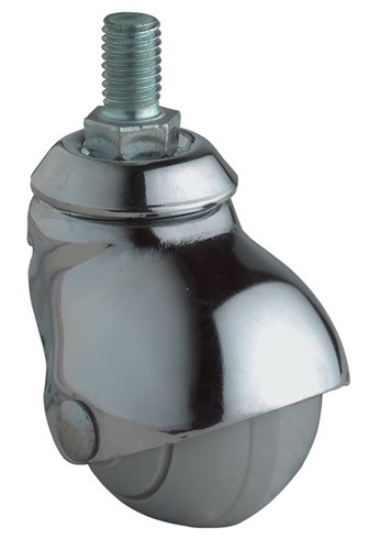 Gehäuse aus Stahlblech, glanzverchromt · zweireihiger Kugelkranz im Gabelkopf · Vollgummirad (grau) · Radachse vernietet · Gleitlager · für harte Böden · Weitere technische Eigenschaften Oberfläche Gehäuse: verzinkt-chromatiert • Ergänzung: Standard • Material Gehäuse: Stahlblech
