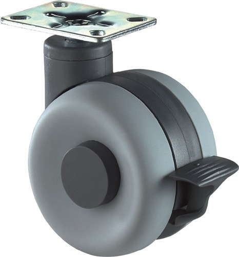 schwarzes Gehäuse · graues Rad · mit Plattenbefestigung · Weitere technische Eigenschaften Befestigungsart: mit Anschraubplatte • Bauhöhe: 130mm • Arbeitstemperatur: -20 - 80°C • Plattenlänge: 60mm