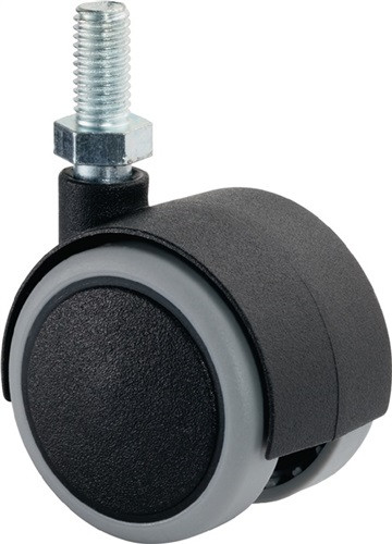 Kunststoffdoppelrolle D.40 mm Trgf.30 kg m.Gew.stift M8 PA