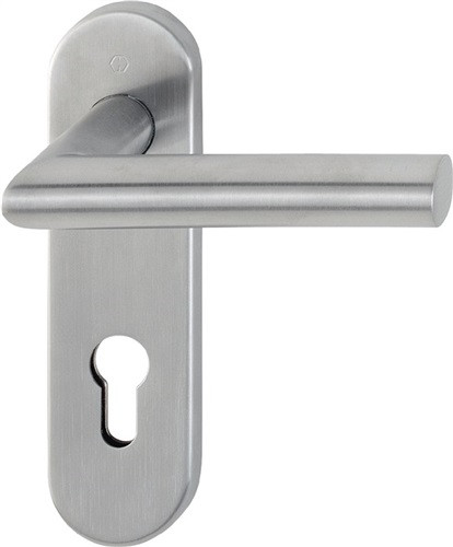 Kurzschild-Garnitur für Innentüren / Wohnungsabschlusstüren · geprüft nach DIN EN 1906: 47-0150A und PIVCERTPlus (1.000.000 Prüfzyklen), Objekt-Garnitur (Gebrauchskategorie 4) · Lagerung: Türgriffe fest/drehbar (Wechselgarnitur: außen Knopf fest), Rückholfedern, HOPPE-Steckgriff-Verbindung mit Kugel-Arretierung Sertos®, wartungsfreie Gleitlager · Verbindung: HOPPE-Profilvollstift (Drückergrt.) / HOPPE-FDW-Profilvollstift (Wechselgrt.), gehärtet · Unterkonstruktion: Stahl, Stütznocken · Befestigung: verdeckt, durchgehend, Gewindeschrauben M5 Entfernung 72 mm, Entfernung Bad SK/OL 78 mm · Weitere technische Eigenschaften Vierkantstift: 8mm • Befestigungsart: Sertos-Verbindung • Anschlagrichtung: DIN links / rechts • Norm: DIN 1906 • Entfernung: 78mm