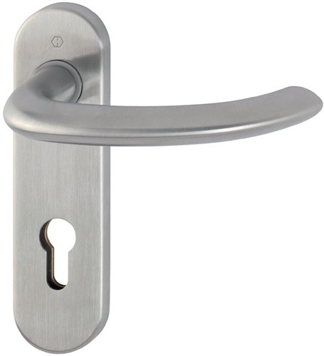 Innentür-Kurzschild-Garnitur geprüft nach DIN EN 1906 (Benutzer-Kategorie 3) · Türgriffe mit Schnellstift-Verbindung (mit 8 mm Vollstift) für Türstärke 37 - 42 mm und Rückholfeder · verdeckte Verschraubung · Anschlagrichtung DIN links / rechts Entfernung 72 mm, Entfernung Bad SK/OL 78 mm · Weitere technische Eigenschaften Vierkantstift: 8mm • Befestigungsart: Schnellstift-Verbindung • Anschlagrichtung: DIN links / rechts • Norm: DIN 1906 • Entfernung: 72mm