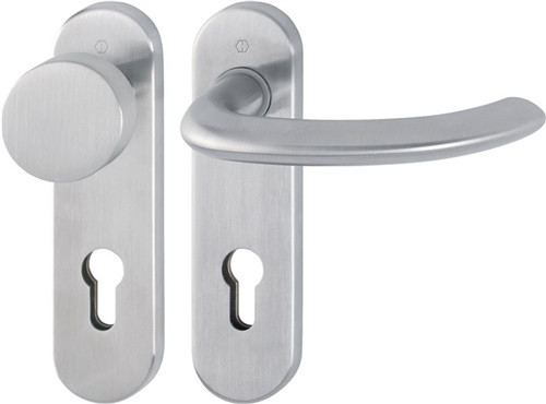 Innentür-Kurzschild-Garnitur geprüft nach DIN EN 1906 (Benutzer-Kategorie 3) · Türgriffe mit Schnellstift-Verbindung (mit 8 mm Vollstift) für Türstärke 37 - 42 mm und Rückholfeder · verdeckte Verschraubung · Anschlagrichtung DIN links / rechts Entfernung 72 mm, Entfernung Bad SK/OL 78 mm · Weitere technische Eigenschaften Vierkantstift: 8mm • Befestigungsart: Schnellstift-Verbindung • Anschlagrichtung: DIN links / rechts • Norm: DIN 1906 • Entfernung: 72mm