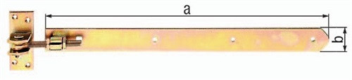 Ausführung: verstellbar um 30 mm · das Ladenband erlaubt das Einstellen des Tores im montierten Zustand · Material: Stahl roh, Oberfläche: galvanisch gelb verzinkt · Weitere technische Eigenschaften Oberfläche: galvanisch gelb verzinkt • Loch-Ø: 7 / 9 x 9 / 6mm • Maß a: 460mm • Maß b: 40mm