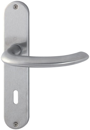 Langschild-Garnitur geprüft nach DIN EN 1906 (Benutzer-Kategorie 3) · Edelstahl, matt · Türgriffe mit Schnellstift-Verbindung (mit 8 mm Vollstift) für Türstärke 35 - 45 mm · Schilder sichtbar verschraubt Entfernung 72 mm, Entfernung Bad SK/OL 78 mm · Weitere technische Eigenschaften Norm: DIN 1906