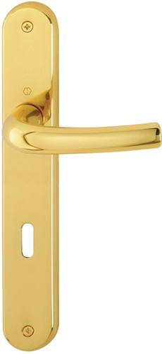 Innentür-Langschild-Garnitur · Messing-Türgriffe mit Schnellstift-Verbindung und Rückholfeder · Schilder sichtbar verschraubt · Vierkant 8 mm · Türstärke 37 - 42 mm · geprüft nach DIN EN 1906 (Benutzer-Kategorie 3) Entfernung 72 mm, Entfernung Bad SK/OL 78 mm · Weitere technische Eigenschaften Norm: DIN 1906