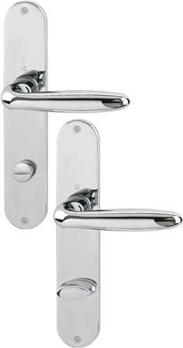 Innentür-Langschild-Garnitur: geprüft nach DIN EN 1906 (Benutzer-Kategorie 3) · Türgriffe mit 8 mm Schnellstift-Verbindung (mit Vollstift) für Türstärke 37 - 42 mm · Schilder sichtbar verschraubt · Entfernung 72 mm · bei Bad 78 mm · Drückergarnitur · Weitere technische Eigenschaften Norm: DIN 1906