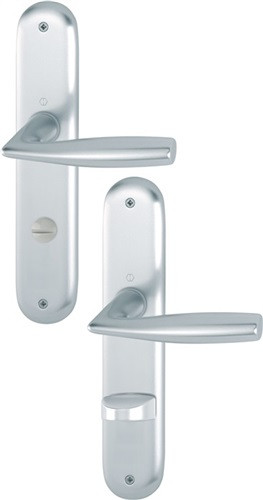 Innentür-Langschild-Garnitur: geprüft nach DIN EN 1906 (Benutzer-Kategorie 3) · Türgriffe mit 8 mm Schnellstift-Verbindung (mit Vollstift) für Türstärke 37 - 42 mm und Rückholfeder · Schilder sichtbar verschraubt · Entfernung 72 mm · bei Bad 78 mm · Weitere technische Eigenschaften Norm: DIN 1906