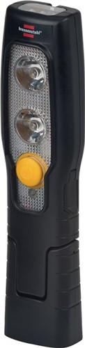 mit 2 + 3 langlebigen LEDs mit spezieller Linsenoptik · handlich, kompakt und zuverlässig · zusätzliche Schaltstufe für 3 LED´s im Leuchtenkopf mit extra langer Leuchtdauer · knickbarer Haltefuß bis +/- 90° mit integriertem Magnet · 360° drehbarer, einklappbarer Haken VE = Blisterverpackung
