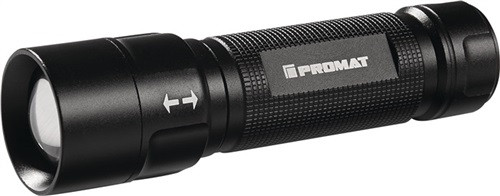 professionelle, spritzwassergeschützte Taschenlampe aus Aluminium · Fokusfunktion sorgt für einen konzentrierten Lichtkegel · 3 verschiedene Leuchtstufen: 100% - 30% - Stroboskop