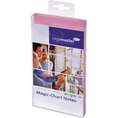Ein attraktives, farbenfrohes Hilfsmittel für jede Diskussionsveranstaltung. Schafft im Handumdrehen Platz für Notizen. Hält einfach und sicher, gesamte Oberfläche haftfähig, ohne Kleber. Patentierte Technik (statische Aufladung, EP1 326 918 B1). Abwischbar und wiederverwendbar, Benutzung mit jedem trocken abwischbaren Marker. Magic-Chart Notes haften durch statische Aufladung auf allen glatten Oberflächen (Glasboards, Whiteboards, gestrichene Wände, Tapete, Fenster, Türen, Schränke, Holz, Kühlschränke usw.). · selbstklebend: Ja · wieder ablösbar: Ja · Werkstoff: Polypropylen · Ausführung des Inhalts (Packung): 100 St./Pack. · Maße: 20 x 10 cm (B x H) · Farbe: pink