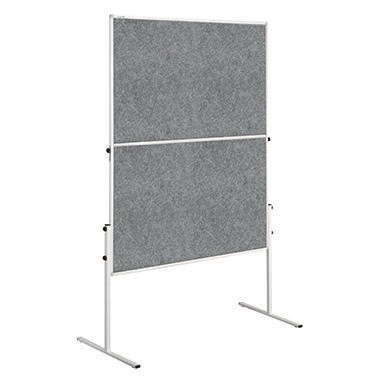 Schneller und einfacher Aufbau. Faltbare oder starre Moderationswand. Füße fest mit der Tafel verbunden. · Maße: 120 x 150 cm (B x H) · zusammenklappbar: Ja · Material des Rahmens: Aluminium · Material der Rückseite: Filz · Masse (Gewicht): 5,5 kg · Lenkrolle feststellbar: Nein · Gesamthöhe: 194 cm · Farbe der Vorderseite: grau · Ausführung des Fußes: Zweiarmfuß · Farbe der Rückseite: grau · Breite der Tafel: 120 cm · Beschreibung der Besonderheiten: Befestigungsmaterial · Höhe der Tafel: 150 cm · Material der Vorderseite: Filz