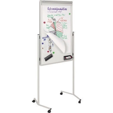 Whiteboard, Pinboard und Flipchart in Einem. Oberfläche aus ultrawiderstandsfähiger e3 - Emaille. Ermöglicht ein flexibles, platzsparendes Arbeiten egal an welchem Ort. Perfekt für den Einsatz in kleinen Besprechungsräumen und Büros. · Maße: 76 x 120 cm (B x H) · Masse (Gewicht): 11,6 kg · Typbezeichnung der Stativform: Zweibeinstativ · Tafel magnethaftend: Ja · Tafel beschreibbar: Ja · Oberflächenbeschaffenheit: lackiert · Material des Rahmens: Aluminium · Material der Pinnfläche: Filz · Farbe: grau · Ablageschale vorhanden: Nein · Farbe des Rahmens: alu · Ausführung des Fußes: Zweiarmfuß mit 4 Rollen · Ausführung der Lieferzusammenstellung: inkl. magnetischem Flipchartblockhalter, Flipchart-Block · Art der Verwendung (Vorderseite): Whiteboard · Art der Verwendung (Rückseite): Pinboard · abwischbar: Ja · Gesamthöhe: 195 cm · Material der Schreibfläche: Stahl