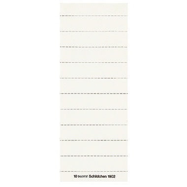 Blanko-Schildchen zur Beschriftung von Leitz Alpha und Beta Hängeregistraturen mit Organisationsleiste. Mit Perforation. · max. Anzahl der Druckzeilen: 3 Druckzeilen · Maße: 60 x 14 mm (B x H) · wieder ablösbar: Nein · Werkstoff: Karton · Verwendung für Produkt: Hängeregistratur ALPHA®, BETA® · selbstklebend: Nein · Beschreibung der Besonderheiten: mit Perforation · Höhe: 14 mm · Grammatur: 190 g/m² · Farbe: weiß · Breite: 60 mm · Packungsmenge: 100 St./Pack.
