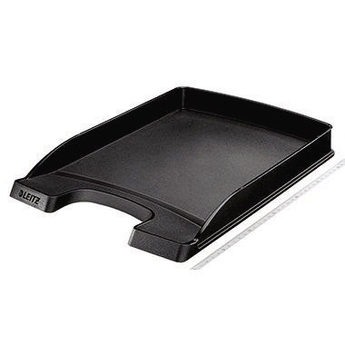 Senkrecht oder versetzt stapelbar, auch mit den Leitz Briefkörben 5227, 5226, 5233 und 5217. · Höhe: 35 mm · Werkstoff: Polystyrol · Verwendung für Papierformat: DIN A4 · Tiefe: 357 mm · Maße: 25,5 x 3,5 x 35,7 cm (B x H x T) · Greifausschnitt vorhanden: Ja · Farbe: schwarz · Breite: 255 mm · Beschriftungsfeld vorhanden: Ja · stapelbar: Ja