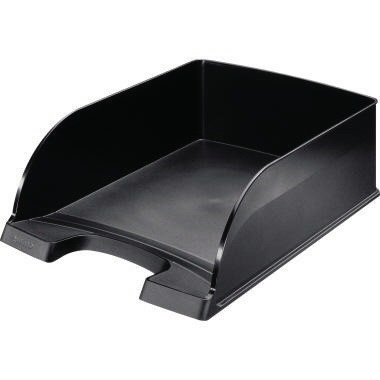 Mit patentiertem "Press & Click"-System, ohne zusätzliche Verbindungsclips oder Distanzelemente. Geringe Tiefe: Passt in Regale und Schränke, nimmt weniger Tiefe der Schreibtischoberfläche ein. · Maße: 25,5 x 10,3 x 35,7 cm (B x H x T) · Verwendung für Papierformat: DIN A4 · Werkstoff: Polystyrol · stapelbar: Ja · Greifausschnitt vorhanden: Ja · Farbe: schwarz · Breite: 255 mm · Beschriftungsfeld vorhanden: Ja · Tiefe: 357 mm · Höhe: 103 mm