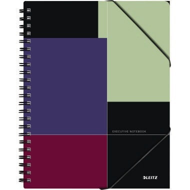 Introseite mit Linien für Kontaktdaten, seitliche Begrenzungslinien auf jedem Blatt und Zeile für Titel und Datum am oberen Rand, das letzte Blatt mit 10 mikroperforierten Memo-/Erinnerungskarten für kurze Notizen. Mit 3 herausnehmbaren, farbigen Trennblättern und Rückdeckel mit 3 integrierten Klappen zur Aufbewahrung von losen Blättern. · Forest Stewardship Council (FSC): Ja · Typbezeichnung der Perforation: Mikroperforation · PEFC: Nein · Papierformat: DIN A4 · Paper by Nature: Nein · Nordischer Schwan: Nein · Grammatur: 90 g/m² · Farbe des Einbandes: mehrfarbig · Ausführung der Bindung: Spiralbindung · Material des Einbandes: Polypropylen · Art des Verschlusses: Gummizugverschluss · EU Ecolabel: Nein · Ausführung der Lieferzusammenstellung: inkl. herausnehmbarem Lineal · Ausführung der Lineatur: kariert · Ausführung der Lochung: 4fach Lochung · Ausführung des Papiertyps: holzfrei · Blauer Engel: Nein · Anzahl der Blätter: 80 Bl.