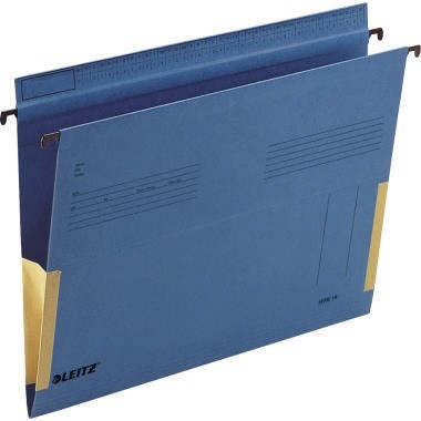 Mit Schlitzstanzung am Vorderdeckel für Heftstreifen 6130. Ausführung: Seitlich mit Fröschen verschlossen. Maße nach DIN 821. Mit überstehendem Reiterfalz, Metall-Hängeschienen mit kunststoffummantelten Hängenasen. · Organisationsaufdruck vorhanden: Ja · Maße: 31,8 x 25 cm (B x H) · Zertifikat/Zulassung: Blauer Engel · Werkstoff: Manilakarton · Verwendung für Papierformat: DIN A4 · Grammatur: 320 g/m² · Farbe: blau · Blauer Engel: Ja · Ausführung des Inhalts (bezüglich der Hauptausstattungsteile: überstehender Reiterfalz, Metall-Hängeschienen mit kunststof · Anordnung der Lage (Öffnungsseite): oben offen · Verwendung für Hängeregistratur: SERIE 18