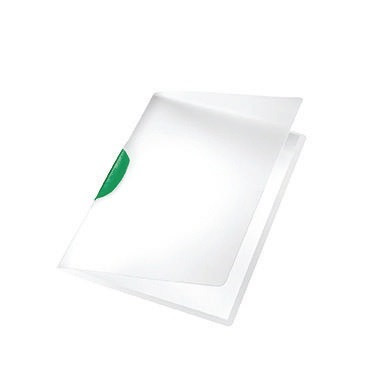 Zur Aufbewahrung von ungelochtem Schriftgut. Der Vorderdeckel ist ganz aufklappbar. · max. Anzahl der Blätter: 30 Bl. (80 g/m²) · Höhe: 310 mm · Werkstoff: Polypropylen · Verwendung für Papierformat: DIN A4 · Stärke: 0,3 mm · Breite: 222 mm · Farbe der Vorderseite: transluzent · Farbe der Rückseite: transluzent · Farbe der Klemme: grün · Material der Klemme: ABS · Maße: 22,2 x 31 cm (B x H)