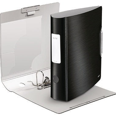 50% weitere Mechaniköffnung für schnelleres und komfortableres Arbeiten. Ablegen auch auf der linken Seite möglich. Am Vorderdeckel mit 3 Innentaschen für lose Papierablage und Utensilien, mit Stiftelasche. 5 Jahre Garantie auf die Mechanik. · Rückenbreite: 82 mm · Material der Kaschierung außen: Polyfoam · Werkstoff: Polypropylen · Material der Kaschierung innen: Polyfoam · max. Anzahl der Blätter: 500 Bl. (80 g/m²) · Schlitze vorhanden: Nein · Sichttasche am Rücken vorhanden: Nein · Sichttasche auf dem Vorderdeckel vorhanden: Nein · Verwendung für Papierformat: DIN A4 · Höhe: 318 mm · Typbezeichnung der Ordnermechanik: 180° Präzisionshebelmechanik · Ausführung der Lieferzusammenstellung: inkl. Stiftelasche, 3 Innentaschen · Maße: 31,2 x 31,8 cm (B x H) · Kantenschutz vorhanden: Nein · Ausführung der Ablagemechanik: 2 Bügel · Blattniederhalter vorhanden: Ja · Breite: 312 mm · Deckblatt vorhanden: Nein · Einstecktasche vorhanden: Ja · Farbe: satin schwarz · Griffloch vorhanden: Ja · Art des Verschlusses: Gummizugverschluss