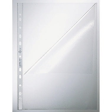 Hochwertige Prospekthülle für den täglichen Gebrauch. · dokumentenecht: Ja · Werkstoff: Polypropylen · Verwendung für Papierformat: DIN A4 · Papiereinlage vorhanden: Nein · Maße: 23 x 30,5 cm (B x H) · Lochrandverstärkung vorhanden: Nein · Farbe: farblos · Dicke der Folie: 0,09 mm · Ausführung der Oberflächenbeschaffenheit: genarbt · Ausführung der Lochung: Universallochung · Anordnung der Lage (Öffnungsseite): oben, links offen · Hüllen strapazierfähig: Nein