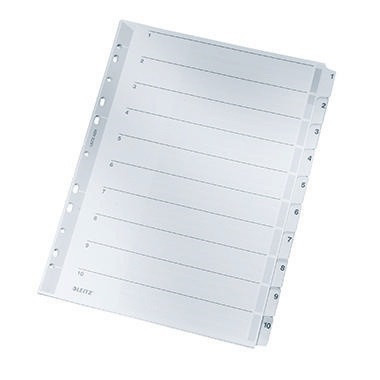 Mit beschriftbarem Deckblatt. Taben sind beidseitig bedruckt. Taben und Lochung sind mit Folie verstärkt für besonders häufige Nutzung. · Grammatur: 160 g/m² · Werkstoff: Karton · Verwendung für Papierformat: DIN A4 · Verwendung für Druck- oder Schreibgerät: Schreibgeräte · Maße: 22,5 x 29,7 cm (B x H) · Lochrandverstärkung vorhanden: Ja · Höhe: 297 mm · Farbe: grau · Deckblatt vorhanden: Ja · Breite: 225 mm · Ausführung des Registers: volle Höhe · Ausführung der Tabe: 01. Okt · Anzahl der Registerblätter: 10 Registerblätter · Ausführung der Lochung: Universallochung