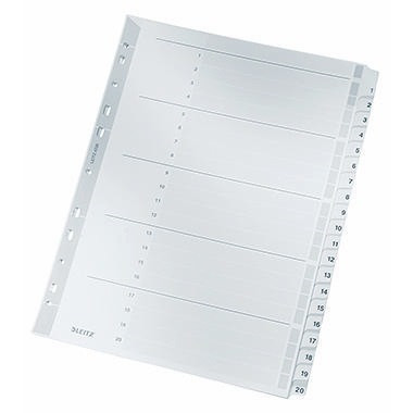 Mit beschriftbarem Deckblatt. Taben sind beidseitig bedruckt. Taben und Lochung sind mit Folie verstärkt für besonders häufige Nutzung. · Ausführung des Registers: volle Höhe · Werkstoff: Karton · Verwendung für Papierformat: DIN A4 · Verwendung für Druck- oder Schreibgerät: Schreibgeräte · Maße: 22,5 x 29,7 cm (B x H) · Lochrandverstärkung vorhanden: Ja · Höhe: 297 mm · Farbe: grau · Breite: 225 mm · Deckblatt vorhanden: Ja · Ausführung der Tabe: Jan 20 · Ausführung der Lochung: Universallochung · Anzahl der Registerblätter: 20 Registerblätter · Grammatur: 160 g/m²