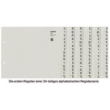 Jeder Vorgang liegt unter der entsprechenden Buchstabenkombination. Inklusive Inhaltsschildern zur Kennzeichnung des Ordnerinhaltes. Mit Lochrandverstärkung des 1. Blattes. · Blauer Engel: Ja · Zertifikat/Zulassung: Blauer Engel · Werkstoff: Tauenpapier, recycelt · Verwendung für Papierformat: DIN A4, Überbreite · Maße: 24 x 20 cm (B x H) · Lochrandverstärkung vorhanden: Ja · Anzahl der Ordner: 24 Ordner · Farbe: grau · Ausführung: halbe Höhe · Ausführung der Tabe: A-Z · Ausführung der Lochung: 2fach Lochung · Ausführung der Lieferzusammenstellung: inkl. Inhaltsschilder · Anzahl der Registerblätter: 360 Registerblätter · Grammatur: 100 g/m²