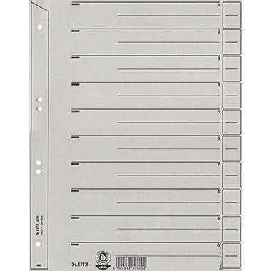 Auch passend für Ringbücher und Hängeordner 1821, 1822, 2921 und 2922. Lochung hinterklebt. · Verwendung für Papierformat: DIN A4 · Werkstoff: Kraftkarton, recycelt · Packungsmenge: 100 St./Pack. · Maße: 22,5 x 30 cm (B x H) · Linienaufdruck vorhanden: Ja · Höhe: 300 mm · Grammatur: 200 g/m² · Anzahl der Tabe: 10 Taben · Farbe des Aufdrucks: schwarz · Breite: 225 mm · Blauer Engel: Ja · Ausführung der Tabe: blanko · Ausführung der Lochung: 6fach Lochung · Art der Lochrandverstärkung: hinterklebt · Farbe: grau · Zertifikat/Zulassung: Blauer Engel
