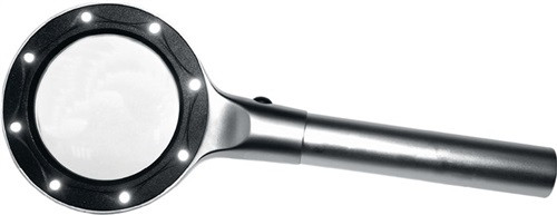 mit 8 LEDs · besonders lichtstark · langer, handlicher Griff · ergonomischer Lichtschalter · Qualitätslinse aus kratzfestem Glas · Betrieb mit 2 Mignonzellen
