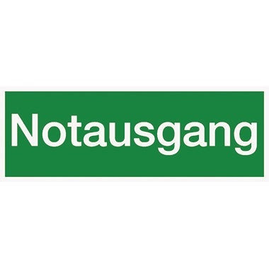 Hinweisschild 29,7 x 10,5 cm (B x H) Notausgang PVC-Folie · Farbe: grün/weiß · Maße: 29,7 x 10,5 cm (B x H) · nachleuchtend: Ja · Text des Aufdruckes: Notausgang · Werkstoff: PVC-Folie