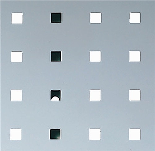 symmetrisch perforiert · aus 1,25 mm starkem Stahlblech · Lochabstand 38 mm · Lochgröße 9,2 x 9,2 mm · besonders stabil durch an der Rückseite angebrachte Versteifungen · Oberfläche pulverbeschichtet · Arretierung mit Kunststoffclip: Montage des Zubehörs ohne Werkzeuge · Weitere technische Eigenschaften Lochabstand: 38mm • Plattenstärke: 1,25mm
