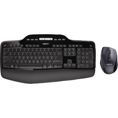Leistungsstarke Kabellose Maus-Tastatur-Kombination. Tastatur mit Logitech Incurvekeys für höchsten Tippkomfort. LCD-Anzeige für Batteriestand. Sondertasten für Multimedia. Mit Handballenauflage. Ergonomische 6-Tasten-Lasermaus mit hyperschnellen Bildläufen mit 1.000 dpi Auflösung. Unifying-USB-Empfänger für bis zu sechs kompatiblen Produkten von Logitech. Technische Daten Tastatur: Ein-/Ausschalter. Gepolsterte Handballenauflage. Anpassbare Tastaturneigung (0, 4 und 8 Grad). Integrierte LCD-Anzeige. Musik- und Lautstärkeregler. Spritzwassergeschütztes Design. Verschlüsselte Übertragung mit 128-Bit-AES. Tasten zum Starten des Taschenrechners, für Internetbrowser und E-Mail, programmierbare Sondertasten. Technische Daten Maus: Gewicht: 135 Gramm mit 2 Batterien vom Typ AA. Auflösung: 1.000 dpi. Tastenanzahl: 6 (2 Standardtasten, 1 Mausrad, 2 Vor-/Zurücktasten, 1 Daumentaste). Umschalter zum Wechseln der Bildlaufmodi. Ein-/Ausschalter. Batteriestandsanzeige. · Systemanforderung: Windows® XP, Windows® Vista® oder Windows® 7 · Layout der Tastatur: QWERTZ · Farbe: schwarz/silber · Ausführung des Inhalts (Set): Funktastatur, Funkmaus · Art des Anschlusses: USB-Nano-Empfänger