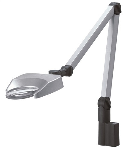 LED · bikonvexe, kratzfeste Glaslinse · keine Einschränkung des Sehfeldes durch vorn offenen Lupenkopf · 2-teilig lackierter Aluminiumarm mit justierbaren Kunststoffgelenken und Federausgleichsmechanik · 3/ 6 Power LED´s mit ca. 25.000 h Lebensdauer · Kippen des Lupenkopfes ermöglicht eine perfekte Oberflächenbeurteilung · mit stabiler Tischklemmung 18 - 74 mm · Weitere technische Eigenschaften Aktionsradius: 820mm