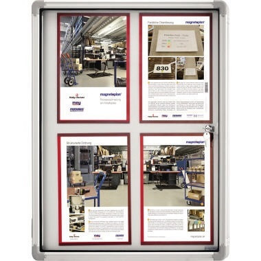 Die Rückwand kann auch als Schreibtafel genutzt werden. · Ausführung der Tür: Flügeltür · Material des Rahmens: Aluminium · Zubehör für die Wandbefestigung: Befestigungsmaterial · Verwendung für Papierformat: 4 x DIN A4 · Typbezeichnung der Glasart: Acrylglas · Tiefe: 4 cm · Schloss vorhanden: Ja · magnethaftend: Ja · Farbe: weiß · Anzahl der Schlüssel: 2 Schlüssel · Einsatzbereich: Innenbereich · Farbe des Rahmens: alu · Maße: 61 x 73 x 4 cm (B x H x T)