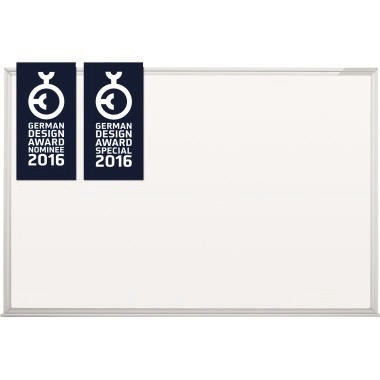 Modernes Whiteboard in schlichtem, elegantem Design. Mit Boardmarkern beschreibbar. Mit eloxiertem Rahmen und innovativen, eleganten Gehrungsecken in schlichtem Design. Diese entsprechen den aktuellen Arbeits-Sicherheitsbestimmungen. Mit rückseitig verschraubter Metallkaschierung für mehr Stabilität.